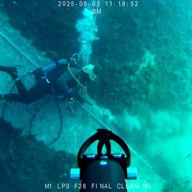 Following a stepwise approach and utilizing an experienced divers team and advanced subsea robotics systems, BM carried out targeted inspections and maintenance works. The problem areas and locations on the bridge’s pier cones and the Lightning Protection & Earthing Systems (LPES) were identified in the previous years detailed cleaning and inspection works conducted by our Company.